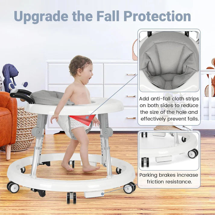 This versatile walker doubles as an interactive activity center, offering built-in play elements to keep your baby entertained and engaged, stimulating both curiosity and coordination.